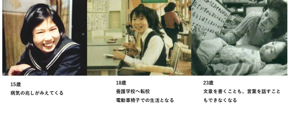 保健師だった母親の影響で、「人の役に立ちたい。」という思いがあり、養護学校に移ってからも朝4時に起きて勉強をしました。しかし、病気は進行し、養護学校卒業後は進学や就職はできず、在宅療養となります。