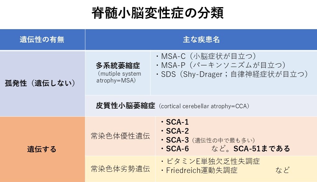 『脊髄小脳変性症』と一言に言っても、その種類は多いです。